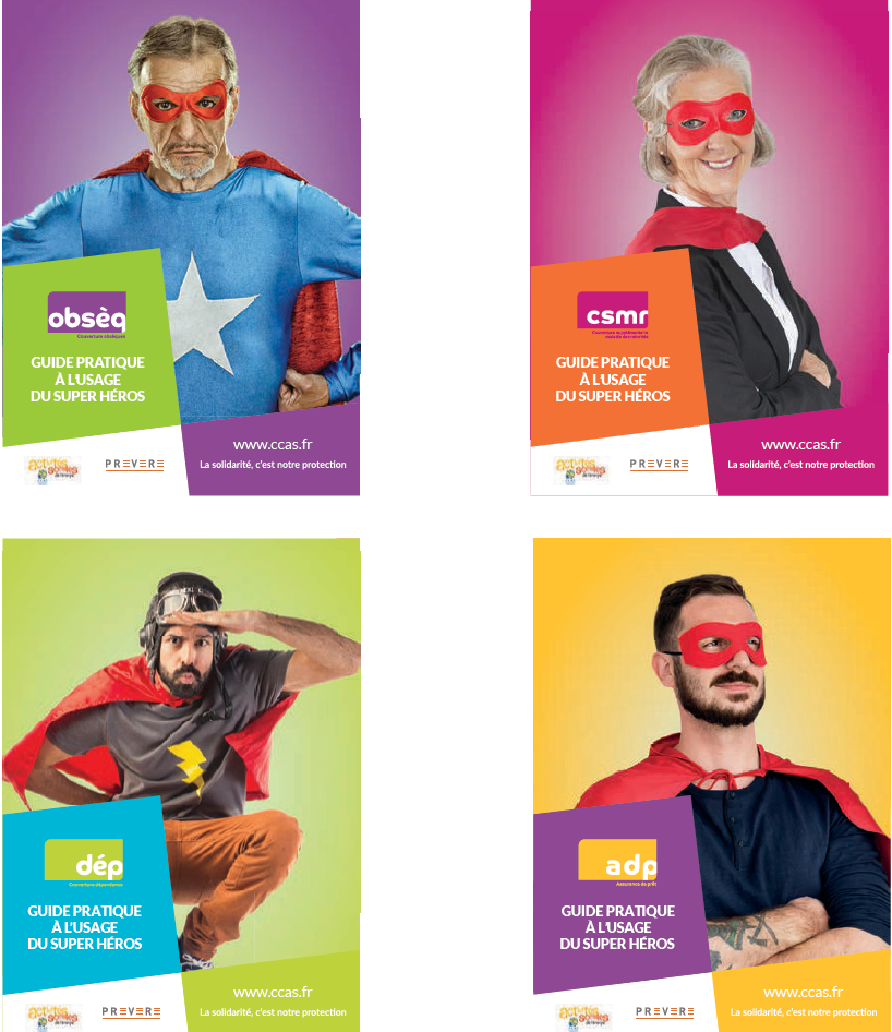 Les guides pratiques de la CCAS ont été conçus pour soutenir et accompagner les assurés dans leur parcours de protection. Chaque visuel met en avant des super-héros du quotidien, symbolisant la force et la solidarité face aux imprévus de la vie.